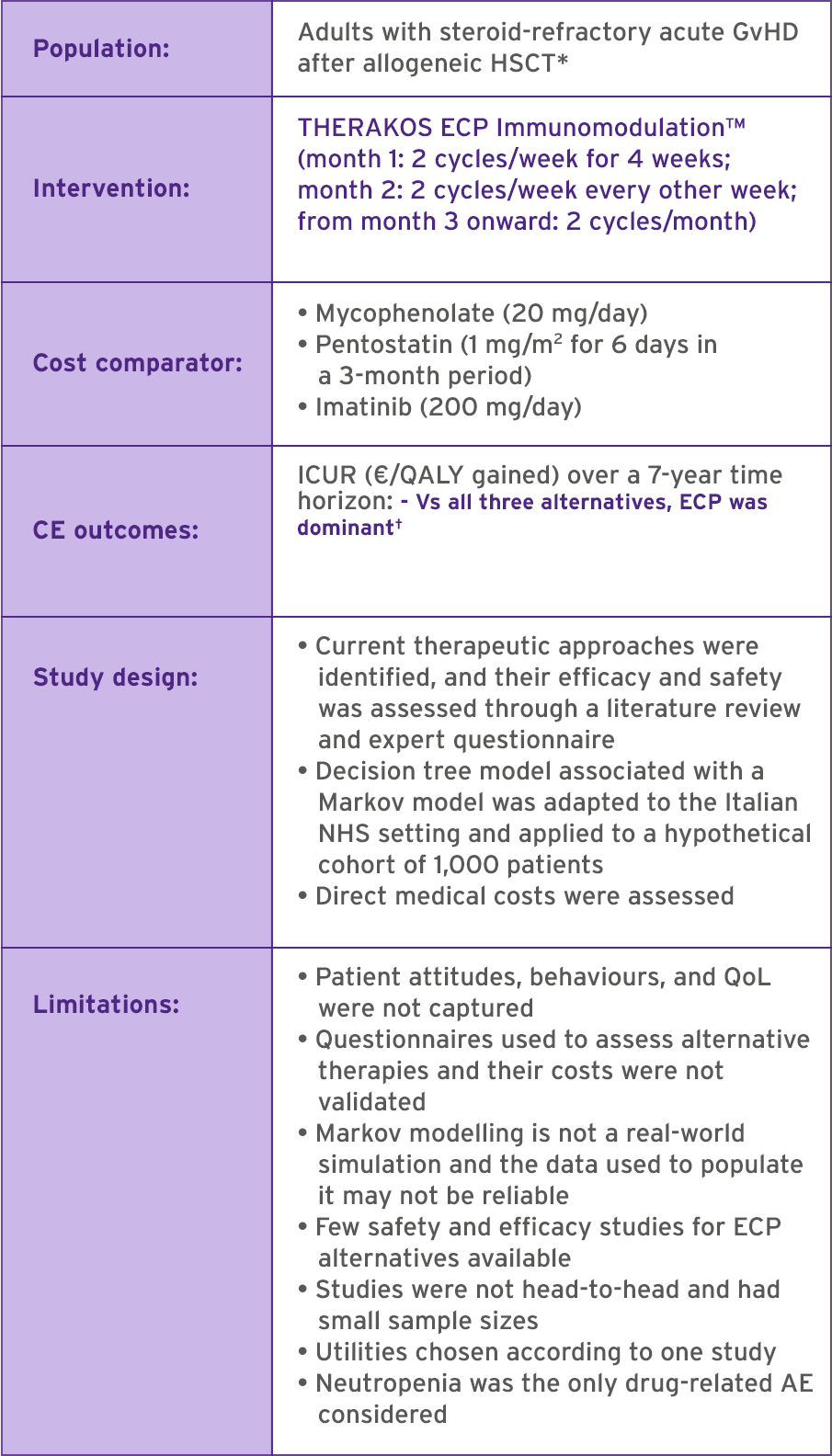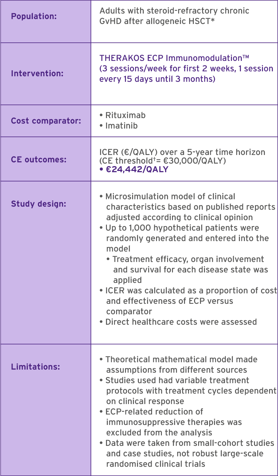 In chronic GVHD, THERAKOS ECP ImmunomodulationTM has shown cost-effectiveness in adults3,5,7