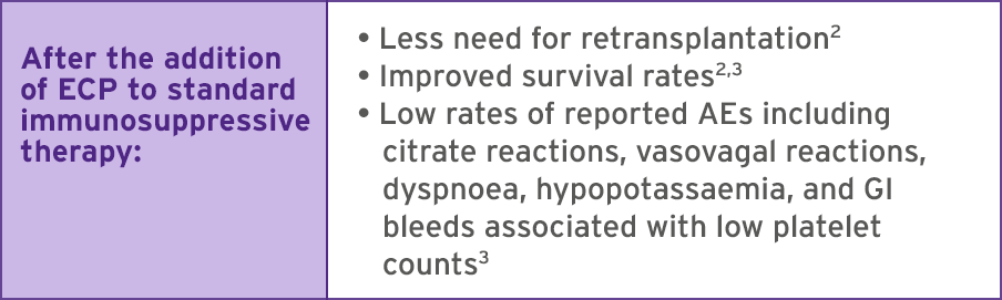 In addition, studies show that THERAKOS ECP ImmunomodulationTM may help to minimise the costs associated with immunosuppressing the patient.3,4
