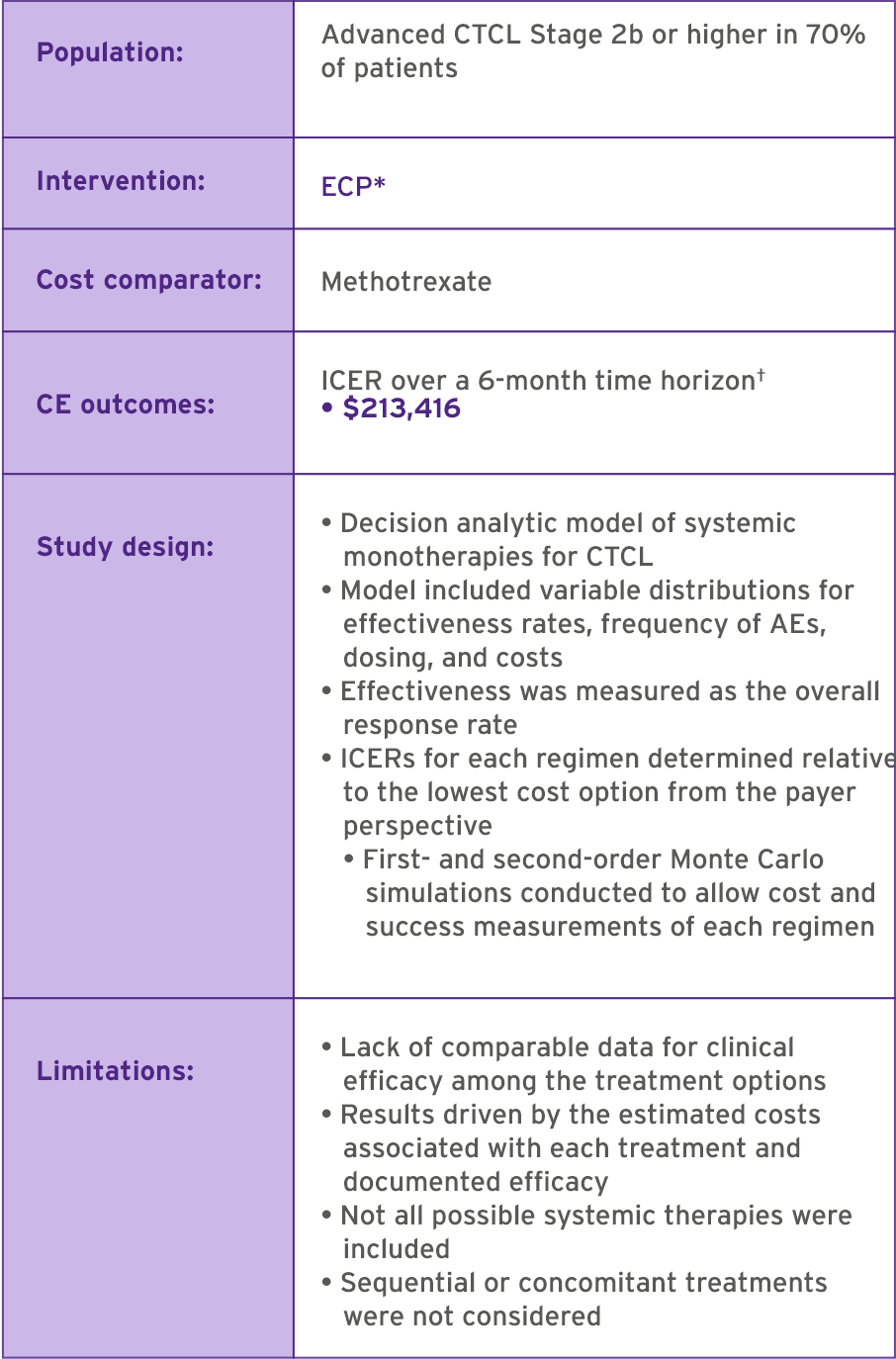 In CTCL, THERAKOS ECP ImmunomodulationTM has shown cost-effectiveness in adults6